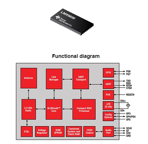 德州儀器公司的高度集成藍牙解決方案,可以幫助客戶快速進入市場。該LMX9838藍牙串行端口模塊,具有完全集成的藍牙2.0基帶控制器,2.4-GHz無線收發(fā)機,晶體,EEPROM,天線,LDO和分立器件,從而,形成了一個完整的,小尺寸藍牙節(jié)點。