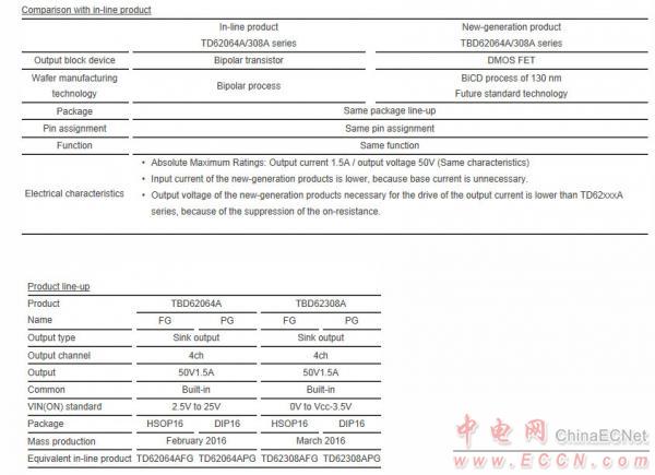大量生產(chǎn)TBD62064A系列產(chǎn)品計劃開始在TBD62308A系列產(chǎn)品2016年二月出貨樣品從今天開始,已具備大批量生產(chǎn)將于2016年三月。