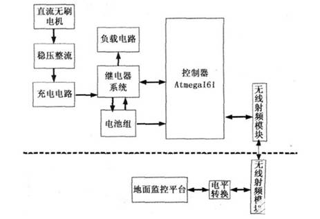 無人機電源管理系統(tǒng)是飛機實現(xiàn)自主飛行的重要組成部分, 其大致框架如圖1 所示。在該系統(tǒng)中, 利用AXI 公司生產的2212/ 34 型號發(fā)電機將動能轉換為220V 交流電, 再經過整流穩(wěn)壓后輸出11.6V 的直流電壓, 可由該輸出電壓為兩節(jié)鋰電池充電。電源管理系統(tǒng)的控制器是meg a161單片機, 該控制器通過檢測兩節(jié)鋰電池的電壓大小從而控制繼電器開關來對電池進行充放電管理。