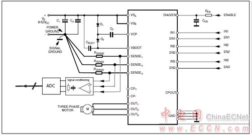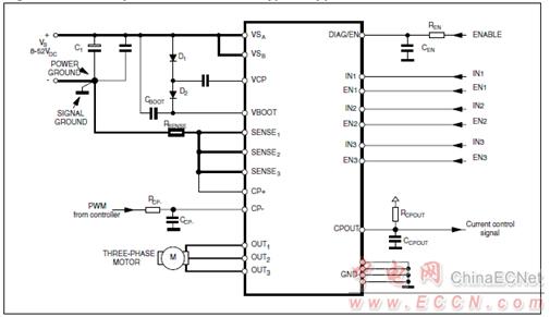 圖2.L6230磁場(chǎng)定向控制(FOC)應(yīng)用電路