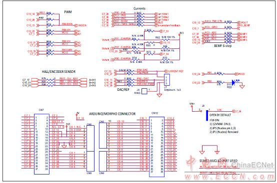 圖10.馬達(dá)控制平臺(tái)P-NUCLEO-IHM001電路圖:STM32 MCU引腳