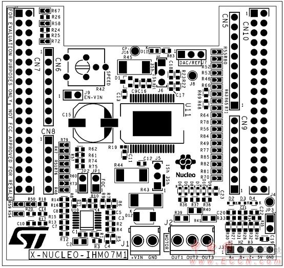 圖11.馬達(dá)控制平臺(tái)P-NUCLEO-IHM001 PCB頂層元件布局圖