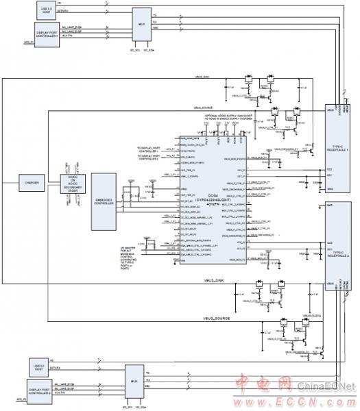 圖4.采用CYPD4225-40LQXIT的CCG4雙端口筆記本應(yīng)用電路圖