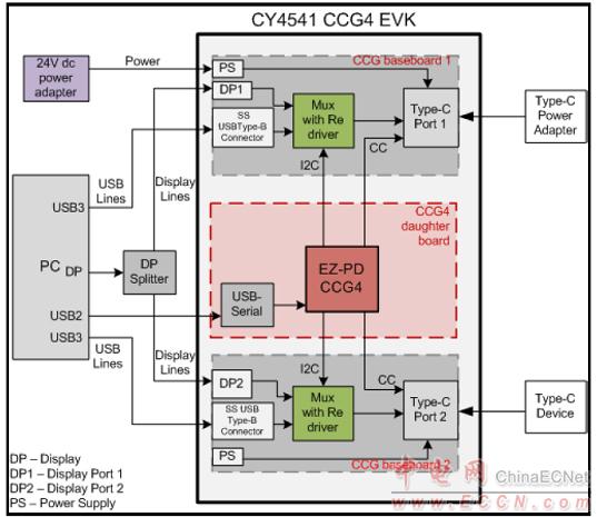 圖7.CY4541 EZ-PD™ CCG4評估套件(EVK)系統(tǒng)框圖