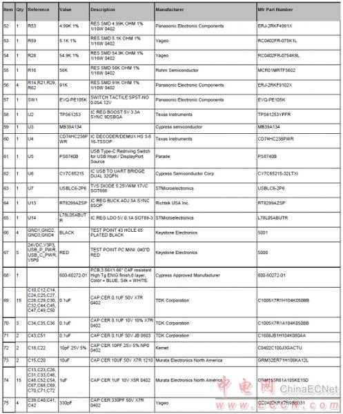 Cypress公司的CY4541EZ-PD CCG4是雙路USB Type-C控制器,采用M0S8技術(shù)和32位48MHz ARM Cortex-M0 MCU技術(shù),集成了128KB閃存和兩個完整的Type-C收發(fā)器,能為筆記本電腦,電源適配器和塢站提供了完整的雙路USB Type-C和USB電源傳送端口控制解決方案.本文介紹了EZ-PD CCG4主要特性,框圖和邏輯框圖,EZ-PD CCG4 USB-PD子系統(tǒng)框圖,以及采用CYPD4225-40LQXIT的CCG4雙端口筆記本應(yīng)用電路圖和CY4541 EZ-PD™ CCG4評估套件(EVK)主要特性,框圖,CCG4基板和子板框圖,電路圖和材料清單.