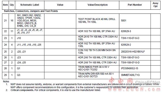 評估板FRDM-HB2001-EVM材料清單: