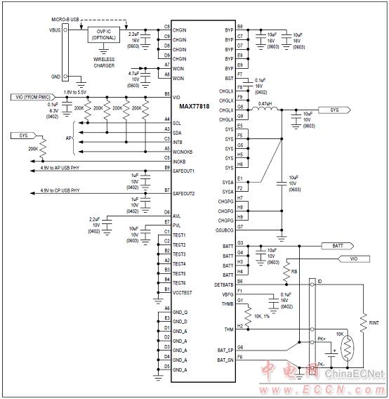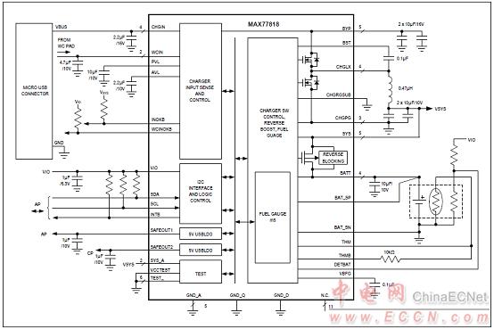 Maxim公司的MAX77818是用于最新智能手機和平板電腦的高性能PMIC,百貨公司雙輸入,帶反向升壓能力的智能功率通路3A開關(guān)模式充電器和適配輸入保護高達16VDC以及有所有全的ModelGauge™ (m5)電量計量(FG)技術(shù),支持USB OTG,無線充電輸入高達5.9V.本文介紹了MAX77818主要特性和優(yōu)勢,框圖,主電池充電器功能框圖和應用電路,以及MAX77818評估系統(tǒng)優(yōu)勢和特性,電路圖,材料清單和PCB設(shè)計圖.