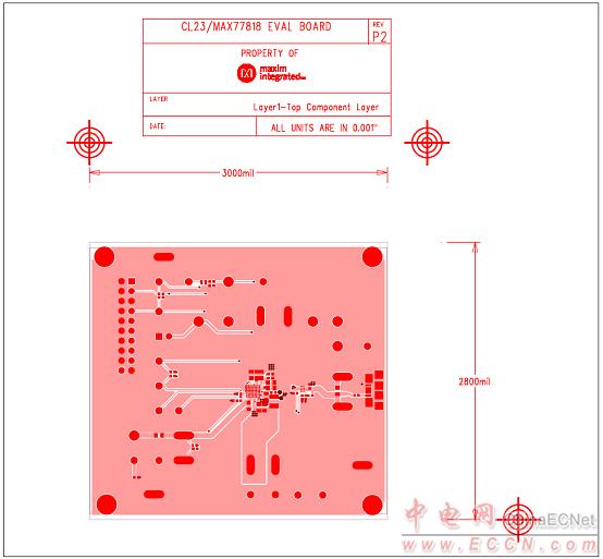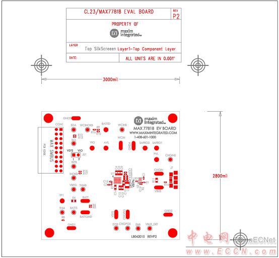 圖6. MAX77818評估系統(tǒng)PCB布局圖:頂層