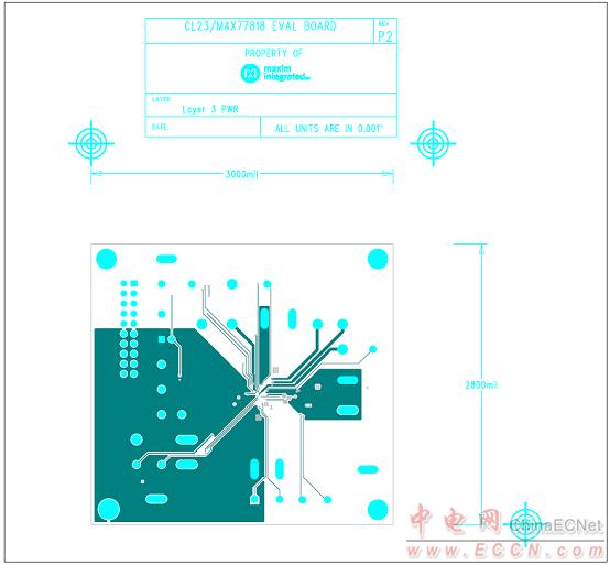圖8. MAX77818評估系統(tǒng)PCB布局圖:內(nèi)部層3