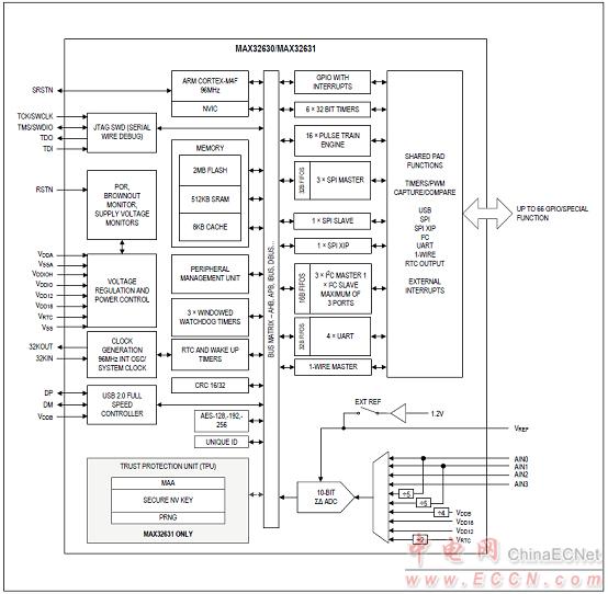 圖1.MAX32630簡(jiǎn)化框圖