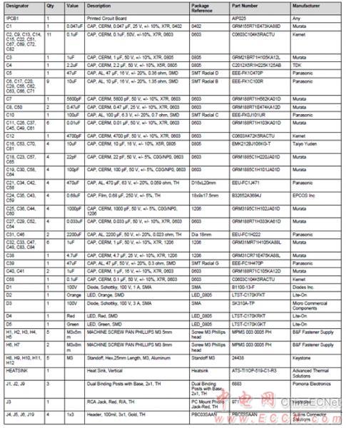 評估板TPA3251D2EVM材料清單(BOM):
