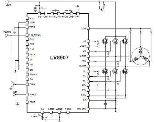 LV8907 400W汽車三相BLDC馬達(dá)控制方案