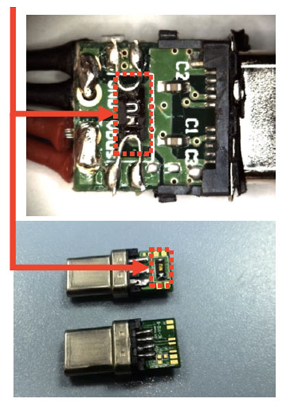 而隨著USB Type-C應(yīng)用的推廣,除了過壓和過流保護,新的保護需求也逐漸被發(fā)現(xiàn),比如過溫保護。由于USB Type-C的體積小,引腳間距小,又要承載最高100W的功率,所以一旦電纜接口端有異物污染,很容易造成內(nèi)阻的增加,進而引發(fā)過熱甚至是煙火危險。所以在線纜端加入過溫保護的必要性逐漸被人們所認識,日本的MCPC(Mobile Computing Promotion Consortium)已經(jīng)有涉及到過溫保護的條款,相信未來歐美及中國市場也會跟進。