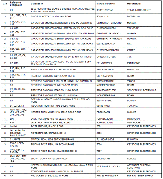 評(píng)估板TPA3116D2EVM材料清單: