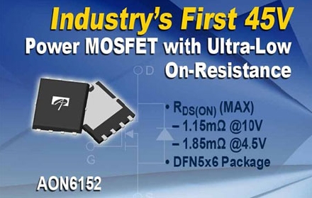 功率半導(dǎo)體及芯片供應(yīng)商AOS萬國半導(dǎo)體推出業(yè)界第一個(gè)單N溝道45V MOSFET:AON6152, 在10V Vgs 時(shí)Rdson可達(dá)到超低1.15mohm。