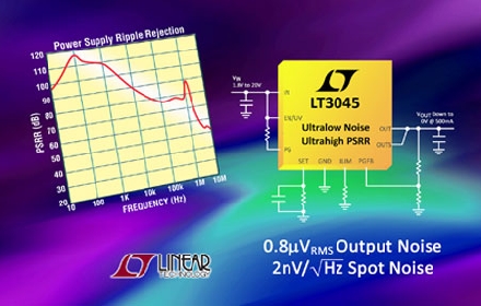 Linear推出超低噪聲、超高電源紋波抑制 (PSRR)、低壓差電壓線性穩(wěn)壓器 LT3045,該器件是廣受歡迎的 200mA LT3042 超低噪聲 LDO 的較大輸出電流版本。LT3045 采用獨(dú)特設(shè)計(jì),在 10kHz 時(shí)產(chǎn)生僅為 2nV/√Hz 的超低點(diǎn)噪聲,在很寬的 10Hz 至 100kHz  帶寬上產(chǎn)生 0.8µVRMS 整體輸出噪聲。其低頻和高頻 PSRR 性能非常出色。低頻 PSRR 直至 10kHz 時(shí)超過(guò) 90dB,高頻 PSRR 直至 2.5MHz 時(shí)超過(guò) 70dB,從而改善了具噪聲或高紋波輸入電源。LT3045 運(yùn)用凌力爾特專有的 LDO 架構(gòu),即精準(zhǔn)電流源基準(zhǔn)之后跟隨一個(gè)高性能單位增益緩沖器,從而產(chǎn)生幾乎恒定的帶寬、噪聲、PSRR 和負(fù)載調(diào)節(jié)性能,并不受輸出電壓影響。此外,該架構(gòu)允許多個(gè) LT3045 并聯(lián),以進(jìn)一步降低噪聲、增大輸出電流并在印刷電路板上擴(kuò)散熱量。