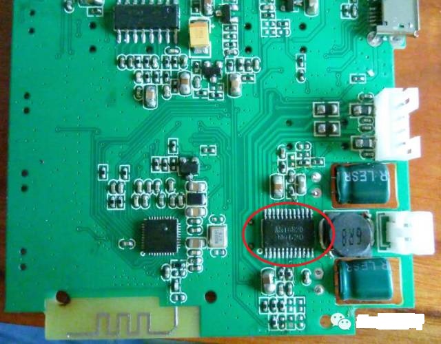 4)這種外置升壓+功放的方案,還有一個(gè)非常致命的缺陷,當(dāng)鋰電池電壓降低到3.5V以下時(shí),由于電池的電流輸出能力變差,但功放的輸出功率還是不變,按升壓IC最大12W的輸出,效率80%計(jì)算,在3.7V時(shí)對(duì)電池端的輸出電流要求是12W/0.8/3.7V=4.05A,在3.5V時(shí),對(duì)電池端輸出電流的要求是4.3A,對(duì)K歌寶的鋰電池來(lái)說(shuō),這個(gè)電流會(huì)有非常大的壓力,品質(zhì)稍差的鋰電會(huì)導(dǎo)致電池電壓瞬間被拉低,致使主控IC工作不正常,出現(xiàn)宕機(jī)的現(xiàn)象。
