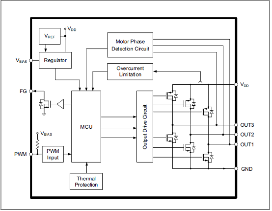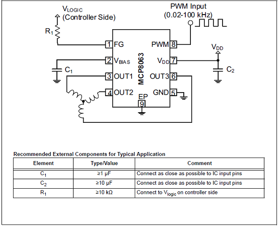圖2.MCP8063風(fēng)扇馬達(dá)驅(qū)動(dòng)應(yīng)用電路