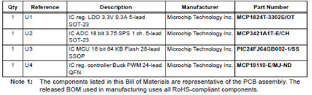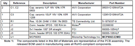 MCP8063 12V三相BLDC無(wú)傳感器風(fēng)扇控制器演示板(ADM00532)材料清單:
