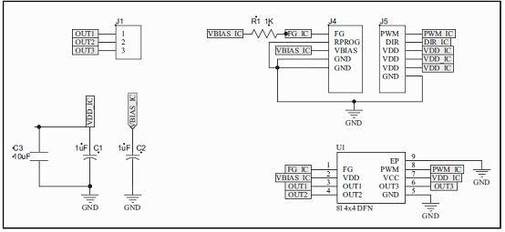 圖4.MCP8063 12V三相BLDC無(wú)傳感器風(fēng)扇控制器演示板電路圖