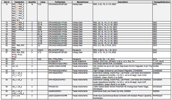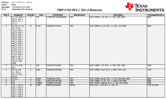 PMP11769 700W汽車D類音頻放大器參考設(shè)計(jì)材料清單: