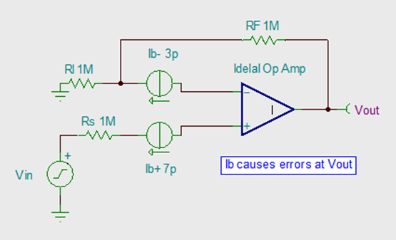 理想情況下,并無(wú)電流進(jìn)入運(yùn)算放大器的輸入端。而實(shí)際操作中,始終存在兩個(gè)輸入偏置電流,即IB+和IB-。