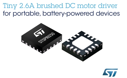 意法半導(dǎo)體擴大其微型低壓高能效電機驅(qū)動器產(chǎn)品組合,推出面向電池供電的便攜和穿戴設(shè)備的STSPIN250 2.6A有刷直流電機單片驅(qū)動器。