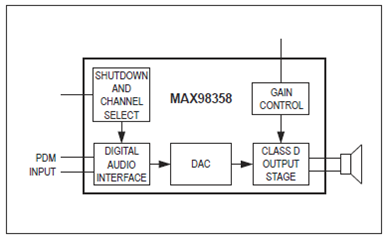 The MAX98358 is a digital pulse-density modulated (PDM) input Class D power amp