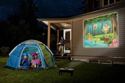 設(shè)想一下,將看電影的歡樂時(shí)光打包隨身攜帶,在幾乎任何地方欣賞想看的電影,是多么愜意的一件事情。移動(dòng)智能電視的設(shè)置十分便捷,幾乎可以在任何表面上顯示,并且能夠根據(jù)產(chǎn)品與觀看表面之間的距離縮放投影影像的大小。只要有一臺(tái)可改裝的設(shè)備,消費(fèi)者就能將其住宅墻壁變?yōu)槠聊,也可在車庫門上投映大型游戲,在后院舉辦電影之夜(圖1),甚至在露營時(shí)也能攜帶。