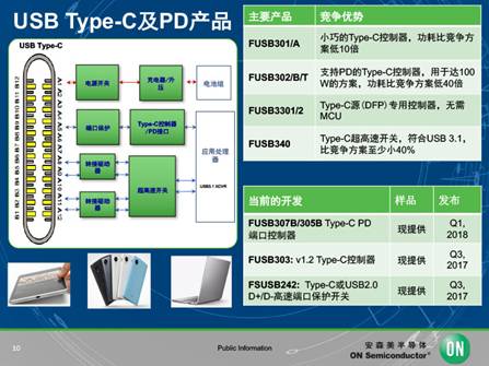 用戶得到了便利的體驗(yàn),而背后支撐這一實(shí)現(xiàn)的是技術(shù)的不斷突破,各大芯片廠商紛紛推出支持USB Type-C的方案,如何開拓創(chuàng)新走在市場前沿成為供應(yīng)商面臨解決的問題。高能效創(chuàng)新者安森美半導(dǎo)體近日在媒體交流會(huì)上分享了其完整的USB Type-C的方案。之所以被稱為完整方案,是因?yàn)榘采腊雽?dǎo)體提供包括從USB Type-C控制器和PD控制器到電源開關(guān)和超快速開關(guān)、端口保護(hù)、轉(zhuǎn)接驅(qū)動(dòng)器、電源轉(zhuǎn)換等一條龍的方案,可實(shí)現(xiàn)低功耗、小尺寸和更簡化的設(shè)計(jì),其功耗低于競爭方案的20倍,封裝小達(dá) 95%。這些方案包括雙角色端口 (DRP)、下行端口 (DFP) 和上行端口 (UFP) 的實(shí)施和配件連接檢測。而相對于設(shè)計(jì)人員,安森美半導(dǎo)體的USB Type-C 全套方案具靈活和易于集成的特性,支持最新的USB Type-C標(biāo)準(zhǔn),易于設(shè)置和配置,支持固件/提供驅(qū)動(dòng)器用于和嵌入式控制平臺(tái)。值得一提的是國內(nèi)第一款支持USB Type-C的手機(jī)就是采用了安森美半導(dǎo)體的方案。