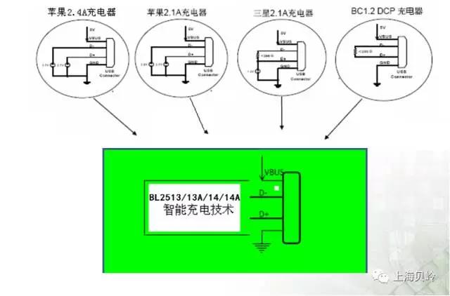 USB智能識別芯片的工作模式是:根據(jù)移動設(shè)備發(fā)出來的信號,自動調(diào)整充電器輸出端USB的D+D-,匹配和移動設(shè)備一樣的充電模式,這樣移動設(shè)備就能取到一個原裝充電器的電流。