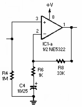 預(yù)放大電路是一個運放電路,并不對音頻做反向處理,看起來像預(yù)放大。這個電路是必須的,因為這個噪音的音頻信號從麥克風過來之后非常微弱,必須經(jīng)過放大,才可以使用。預(yù)放大的增益由R8和R6的比值決定,通過改變這兩個電阻值可以控制音頻信號的幅度,這個信號將被送入相位反轉(zhuǎn)電路。