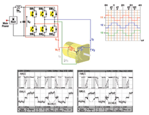 如果需要更高的效率和性能,就必須通過脈寬調(diào)制(PWM)方法來產(chǎn)生正弦波。為了更進一步的改進效率,還可以使用空間向量調(diào)制方法。
