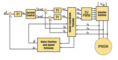圖2 內(nèi)置永磁同步馬達(IPMSM)向量控制系統(tǒng)框圖