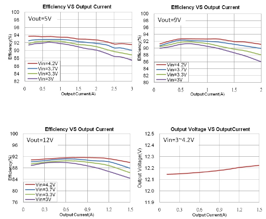 Vin 輸入電壓,Vout 輸出電壓,Iout(max)輸出最大電流,Eff 轉(zhuǎn)換效率