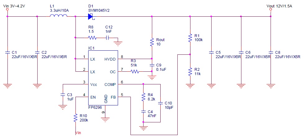 C12,R8:突波吸收元件,降低LX 開關(guān)切換突波。