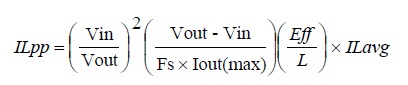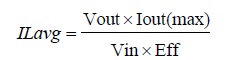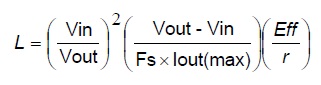 電感值計(jì)算公式,r 電感峰對(duì)峰值與電感平均電流的比例(一般設(shè)定在0.3~0.5)。舉例: