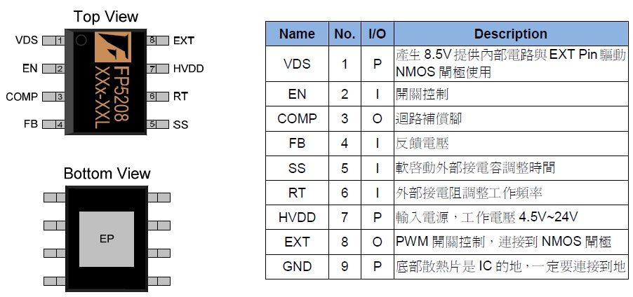 封裝SOP-8L(EP) / FP5208, DFN-12L / FP5208B