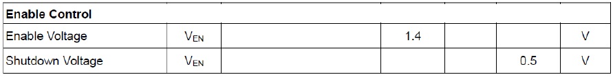 如下規(guī)格書EN 電性,EN 大於1.4V IC 開啟,低於0.5V 關(guān)閉,EN 關(guān)閉IC 耗電流小於1μA,不要操作在0.5V~1.4V 之間;EN 不能浮接,如果不需要開關(guān)控制,在VIN 與EN 之間接100k,可以自動(dòng)啟動(dòng)IC。