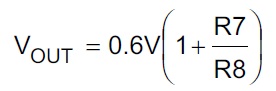 輸出端到FB 接R7,F(xiàn)B 到地接R8,輸出電壓計(jì)算公式如下,0.6V 是FB 反饋電壓。