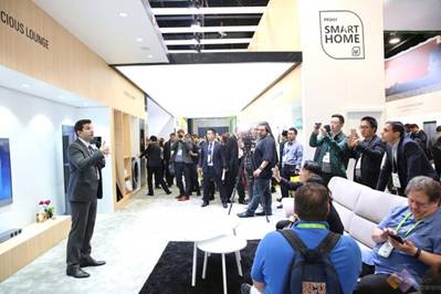 而海爾則在CES上展出了涵蓋智慧客廳、智慧廚房、智慧浴室等5大空間,包含空氣、用水、美食、洗護(hù)、安全、健康、娛樂(lè)7大生態(tài)圈的智能家居系統(tǒng)。