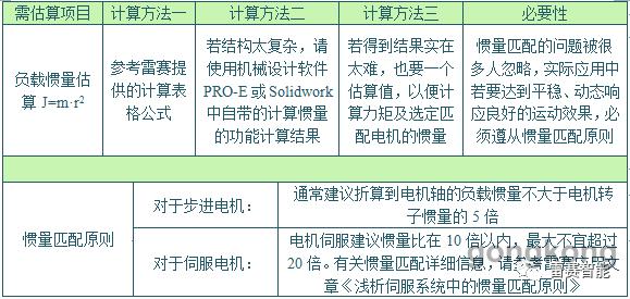 4)計(jì)算負(fù)載慣量、選擇電機(jī)慣量;