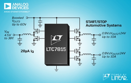 | LTC7815 三路輸出、降壓/降壓/升壓型同步 DC/DC控制器在汽車(chē)啟/停系統(tǒng)中以高達(dá)2.25MHz工作并具有28μA IQ |