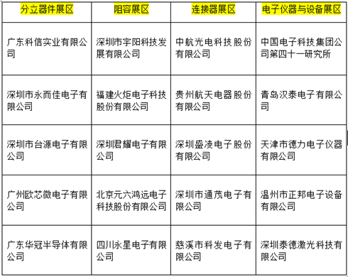 在此次電子展中,包括廣東科信實業(yè)有限公司、深圳市宇陽科技發(fā)展有限公司、中航光電科技股份有限公司、中國電子科技集團(tuán)公司第四十一研究所、深圳市永而佳電子有限公司、福建火炬電子科技股份有限公司、貴州航天電器股份有限公司、青島漢泰電子有限公司等在內(nèi)的國產(chǎn)企業(yè)將集體亮相并帶來其最新的技術(shù)產(chǎn)品。