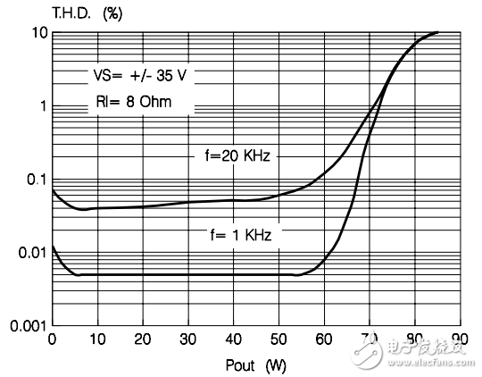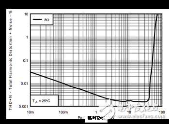 上一代的D級放大器實現(xiàn)了0.03% (-70dB)的總諧波失真+噪聲,相比之下,擁有相似輸出功率的AB級放大器的總諧波失真為0.005% (-86dB),如圖2所示。圖3顯示了同樣的對比,但它使用了TI最新的高功率D級放大器。此前,雖然D級放大器在高功率水平時的效率要提高大約1.5倍,因此和相似功率的AB級放大器相比不需要很多散熱,但對于高清音頻,人們并不會考慮使用D級放大器。