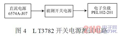 為了驗(yàn)證該開關(guān)電源性能,采用如圖4所示的方法進(jìn)行驗(yàn)證。因?yàn)樵撾娫吹妮斎腚娏鬏^大,輸入的直流電源采用安捷倫的6574A2J07。它的輸出電流最高可達(dá)42A,輸出電壓在0~50V范圍內(nèi)可調(diào),輸出負(fù)載采用建伍的PEL1022201,通過它可以直觀地看到輸出電壓和電流情況。經(jīng)過驗(yàn)證,該電路完全滿足使用單位需求。
