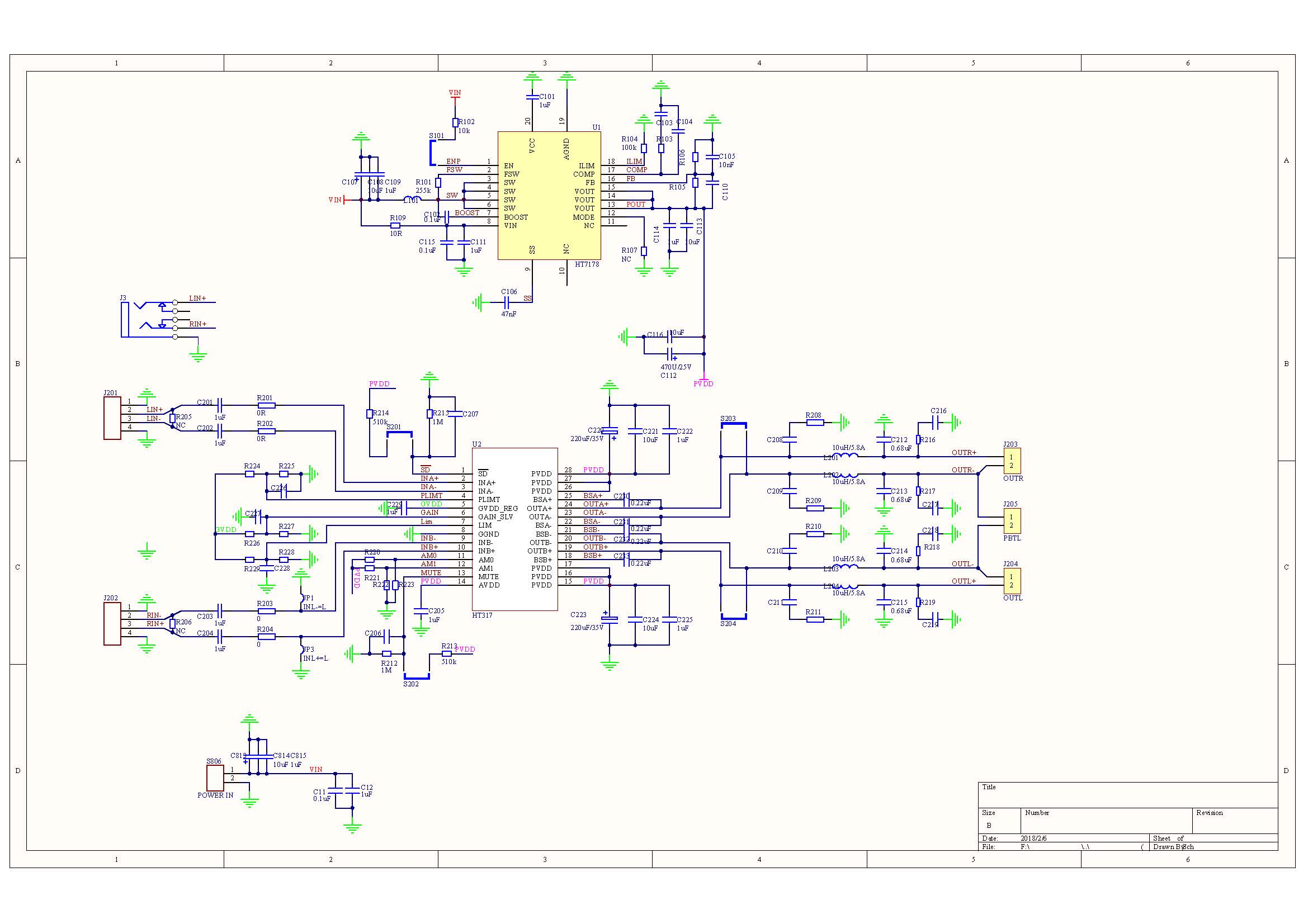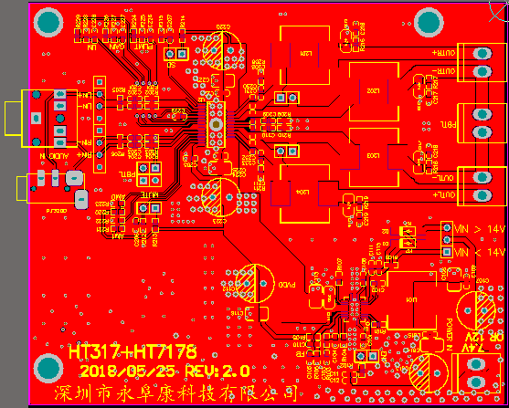 1,采用HT7178同步升壓轉(zhuǎn)換器。此設(shè)計10V-15V輸入電壓,可實現(xiàn)20V輸出,并且能夠為負(fù)載提供5.2A連續(xù)電流;