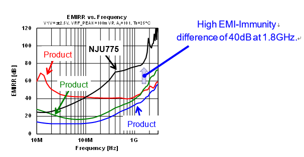 為了提高無線連接不斷發(fā)展的IoT及傳感器模塊等設(shè)備通信信息的可靠性,該運算放大器大大提高了抑制無線移動通信設(shè)備、便攜設(shè)備等產(chǎn)生的RF噪聲性能。