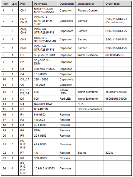 步進(jìn)馬達(dá)擴(kuò)展板X-NUCLEO-IHM14A1材料清單: