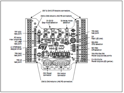 圖6.步進(jìn)馬達(dá)擴(kuò)展板X-NUCLEO-IHM14A1開關(guān)和連